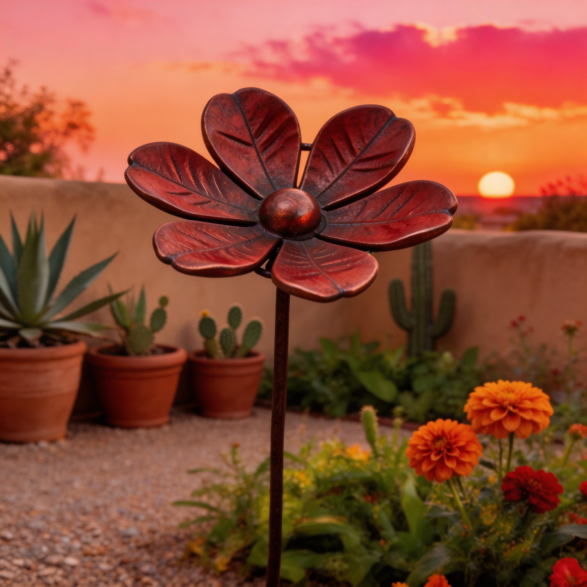 🌸Garden Decor Metal Flower Stake – Outdoor & Indoor Lawn, Balcony, Flower Bed – Perfect Gift for Garden Lovers – Handcrafted Red Flower Accent